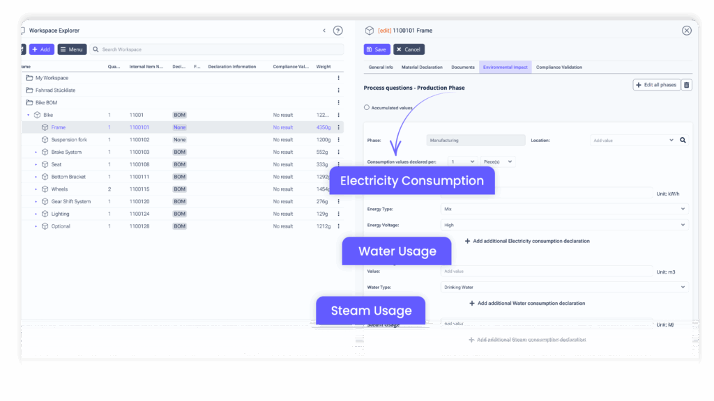 "We aim to simplify the complex process of sustainability assessment, making it reproducible and scalable with our solution. To achieve this, the necessary data and processes are firmly integrated into product development. Once material, bill of materials, and process data are stored, mass calculations for your portfolio can be performed, providing a solid foundation for life cycle assessment calculations. This gives companies, for the first time, a tool to systematically capture their entire portfolio in terms of sustainability and to standardize this information for communication with customers“