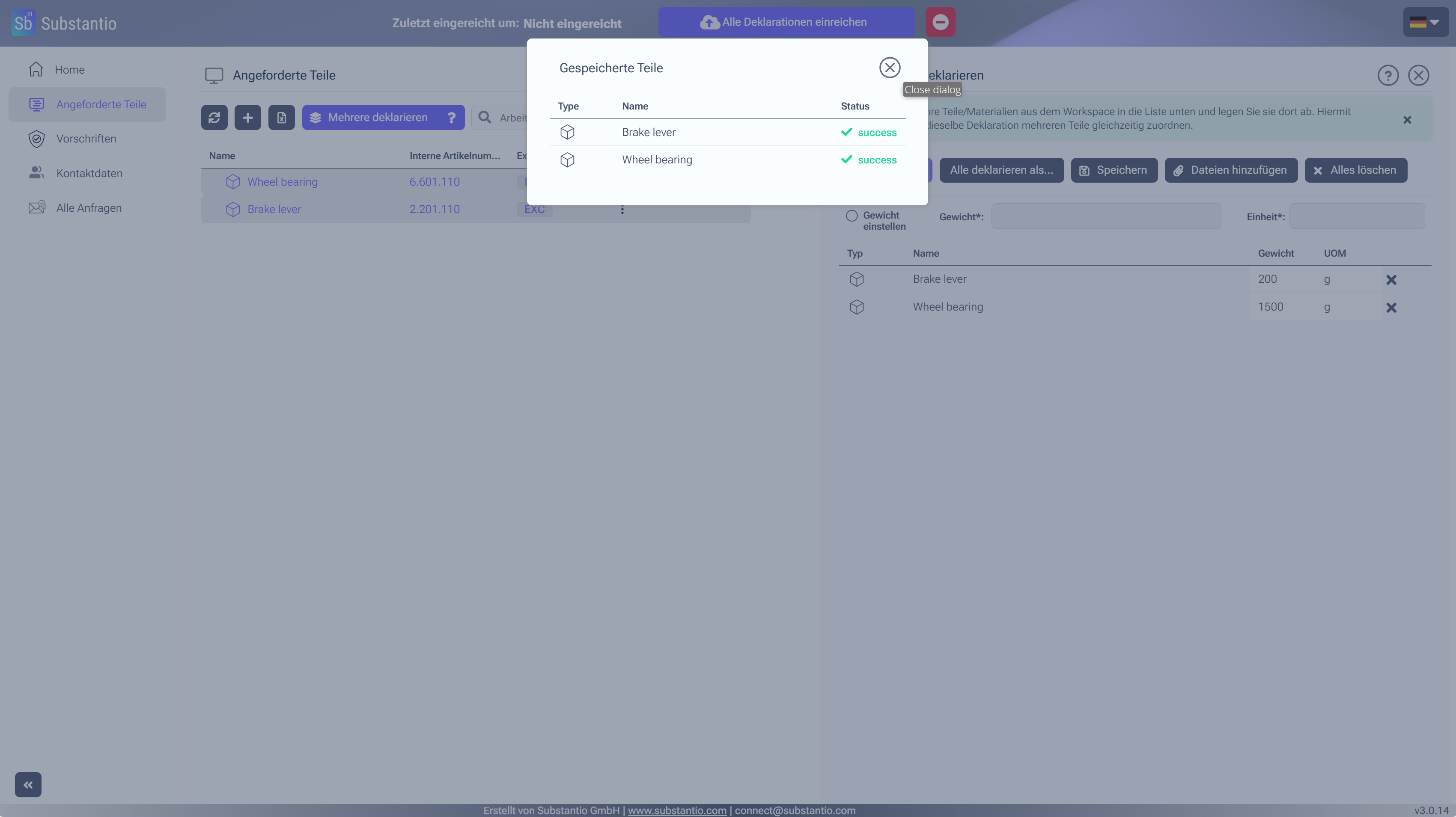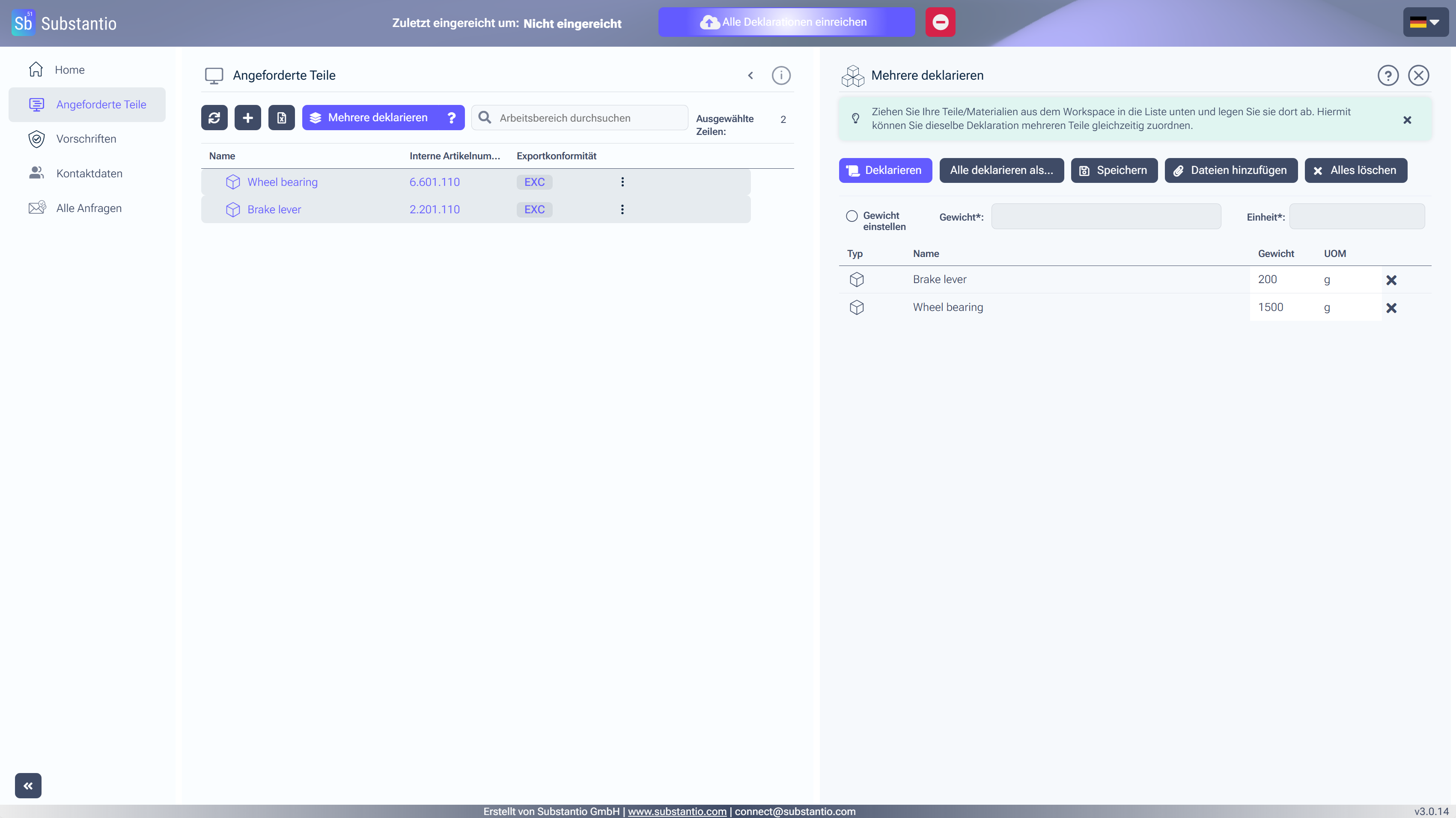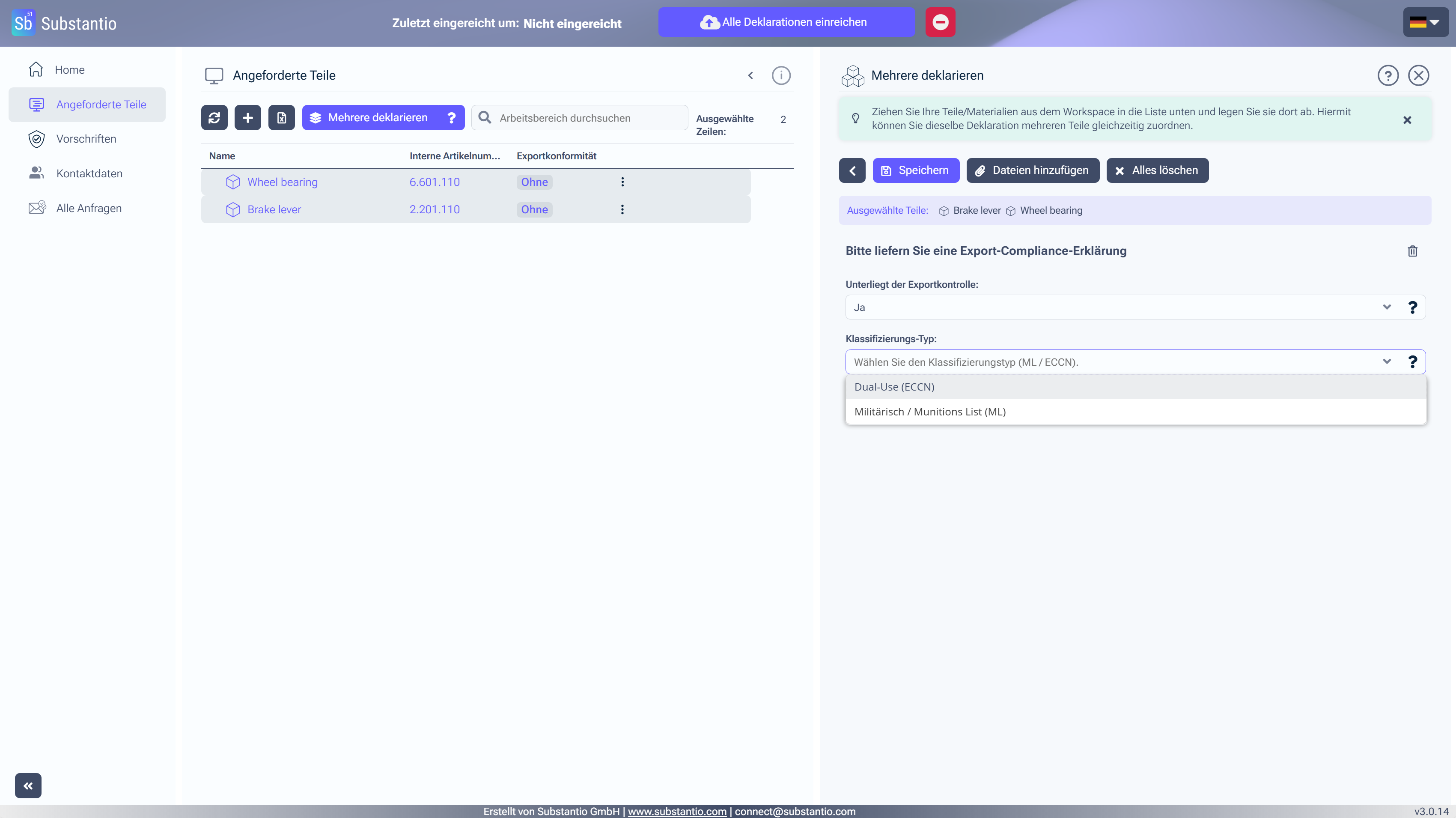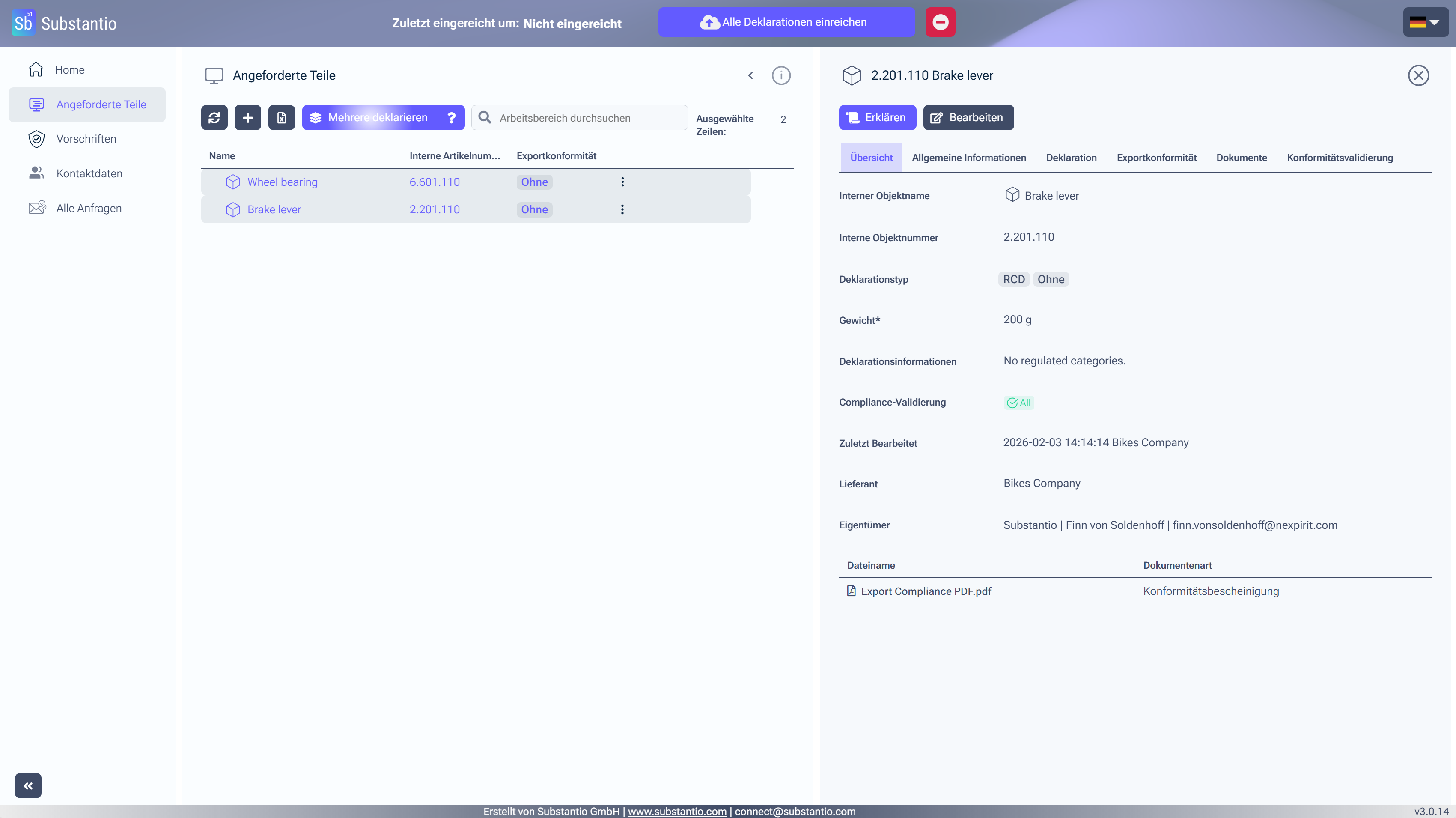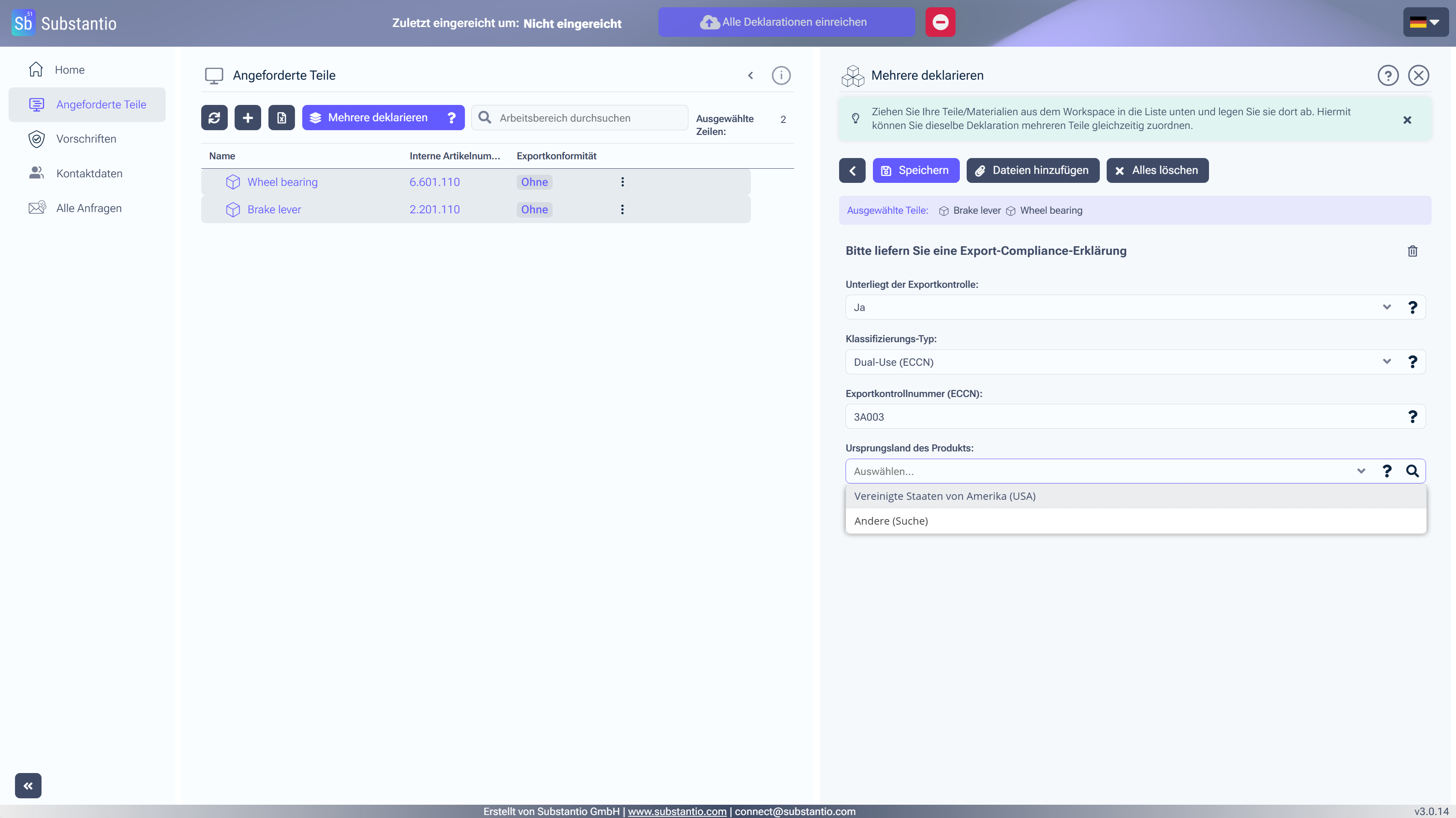 Über den Link in der E-Mail Ihres Kunden gelangen Sie zur Substantio-Plattform. Um die Anfragen Ihres Kunden zu bearbeiten, klicken Sie auf Jetzt deklarieren.