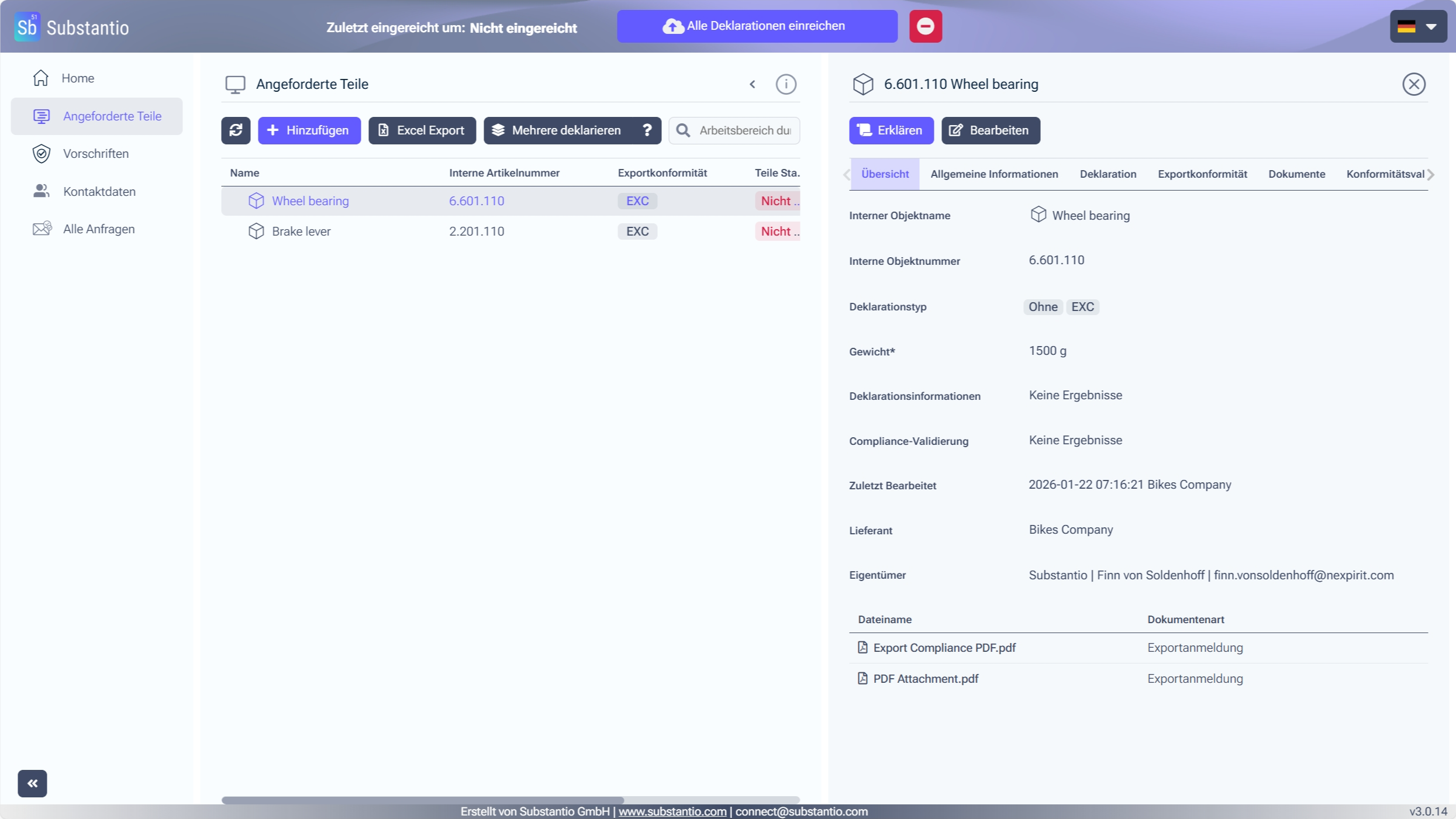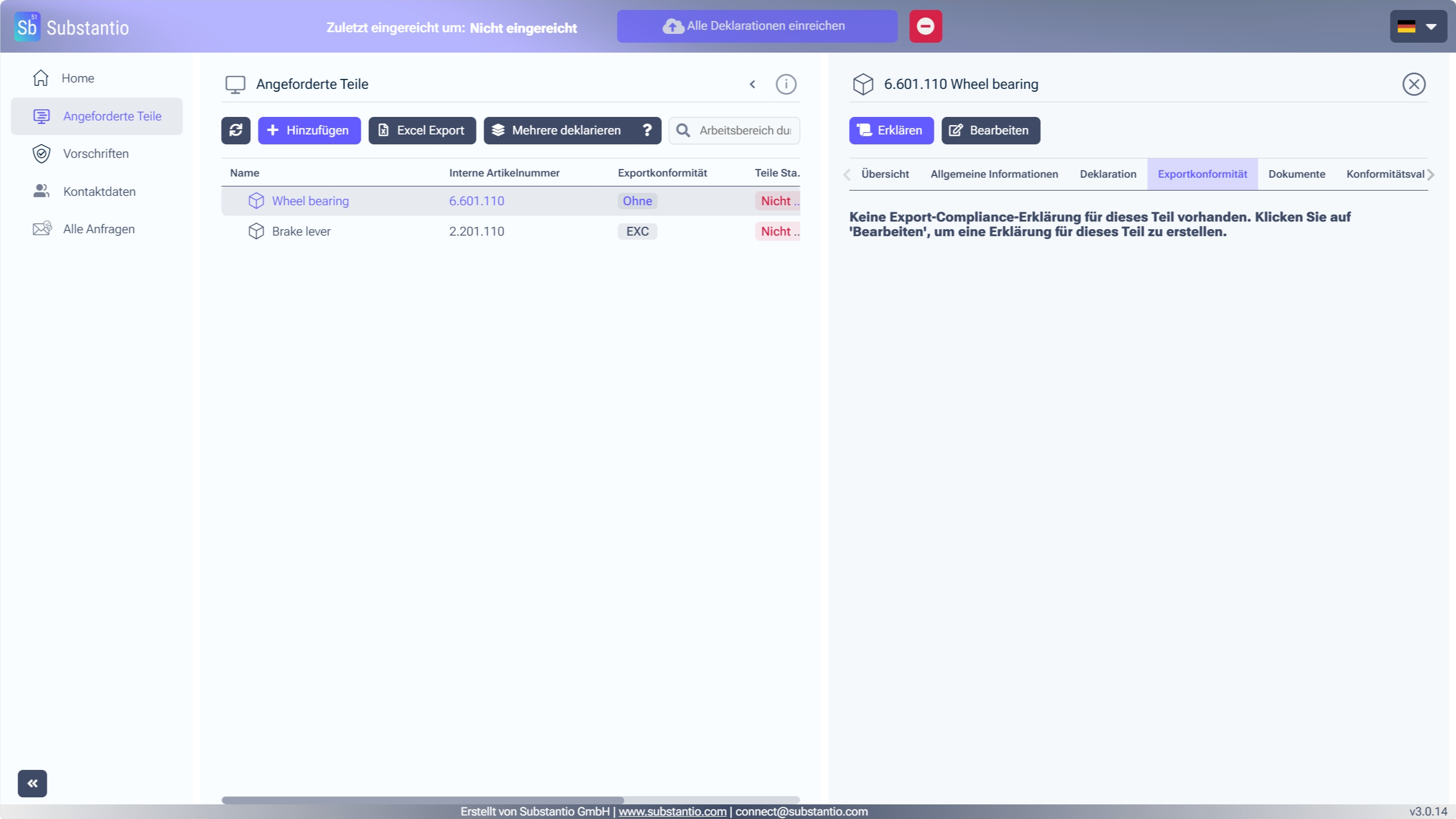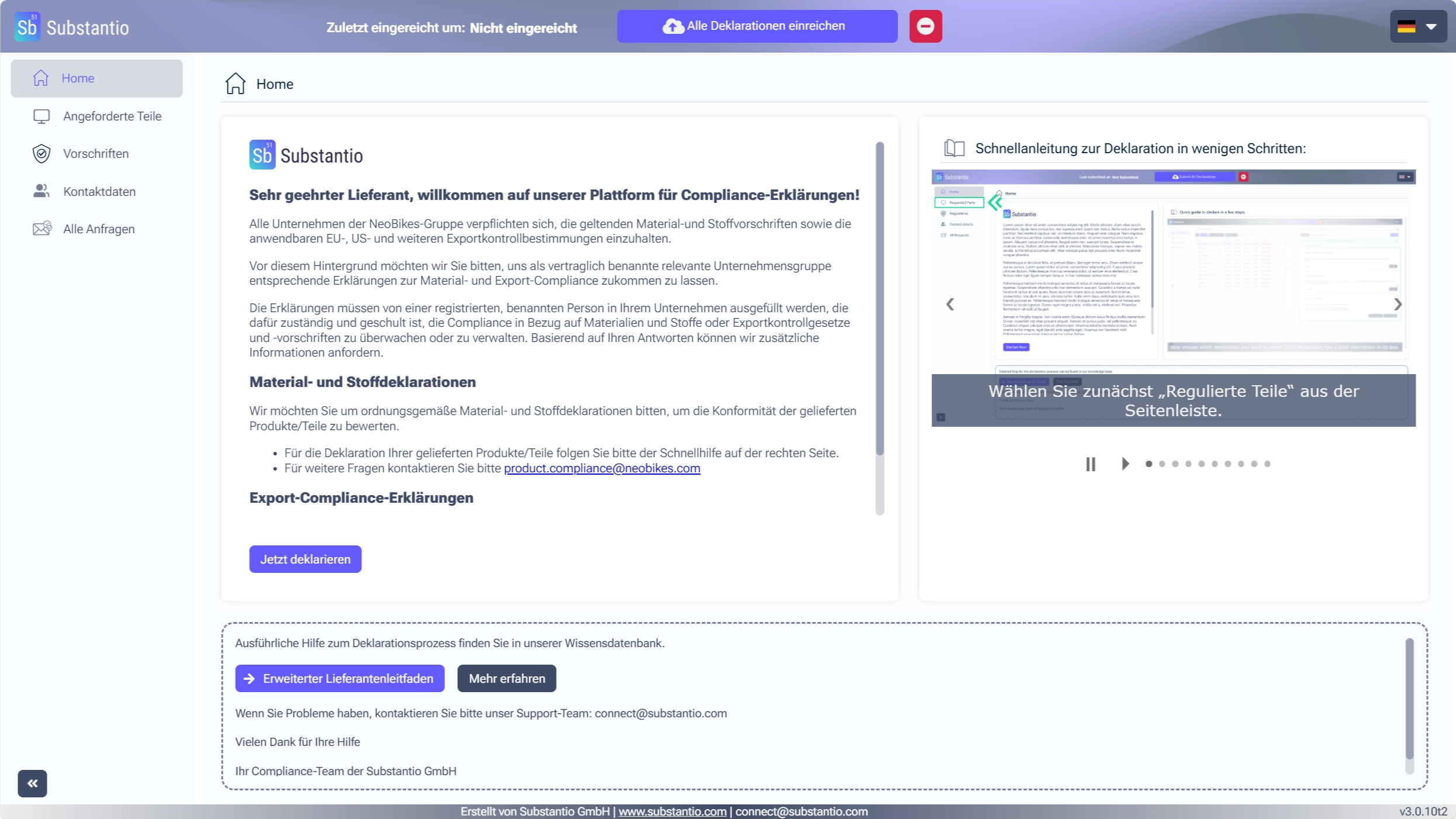 Über den Link in der E-Mail Ihres Kunden gelangen Sie zur Substantio-Plattform. Um die Anfragen Ihres Kunden zu bearbeiten, klicken Sie auf Jetzt deklarieren.