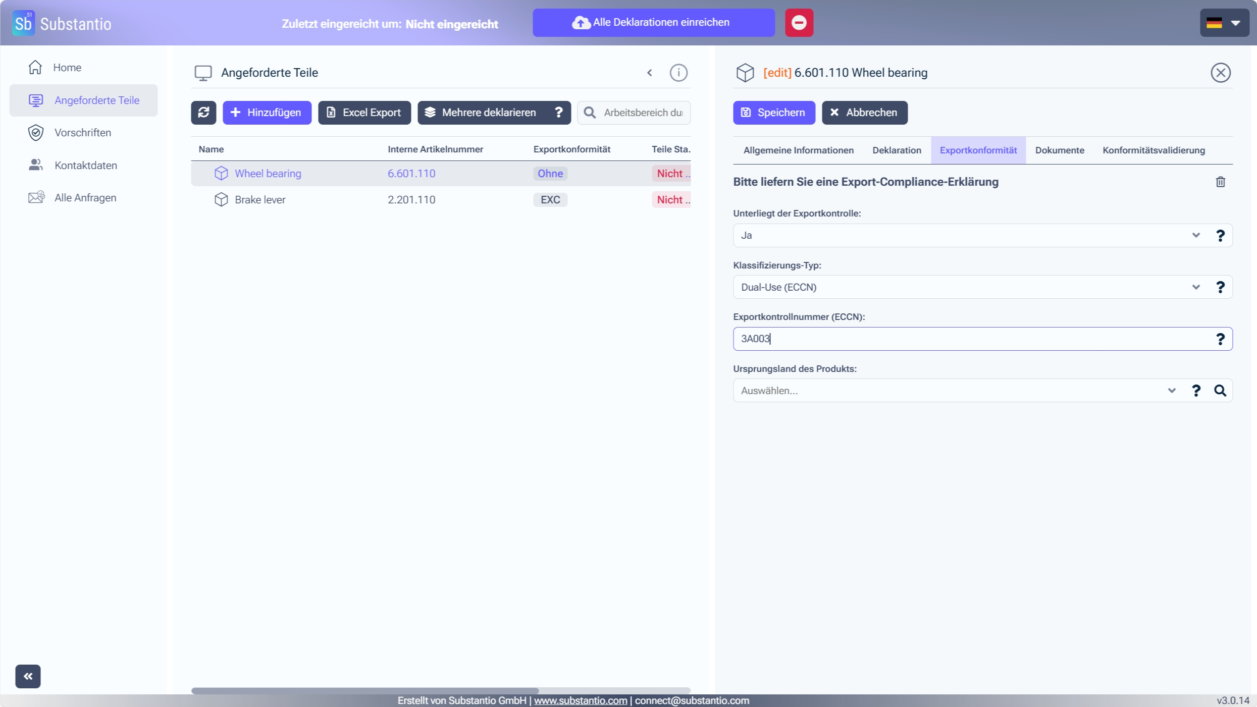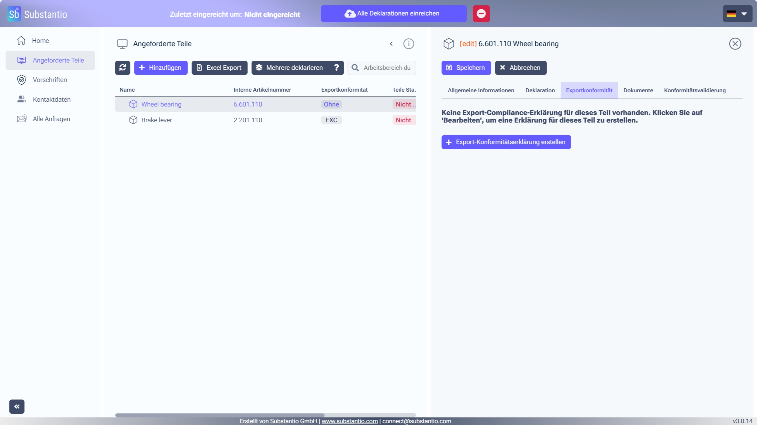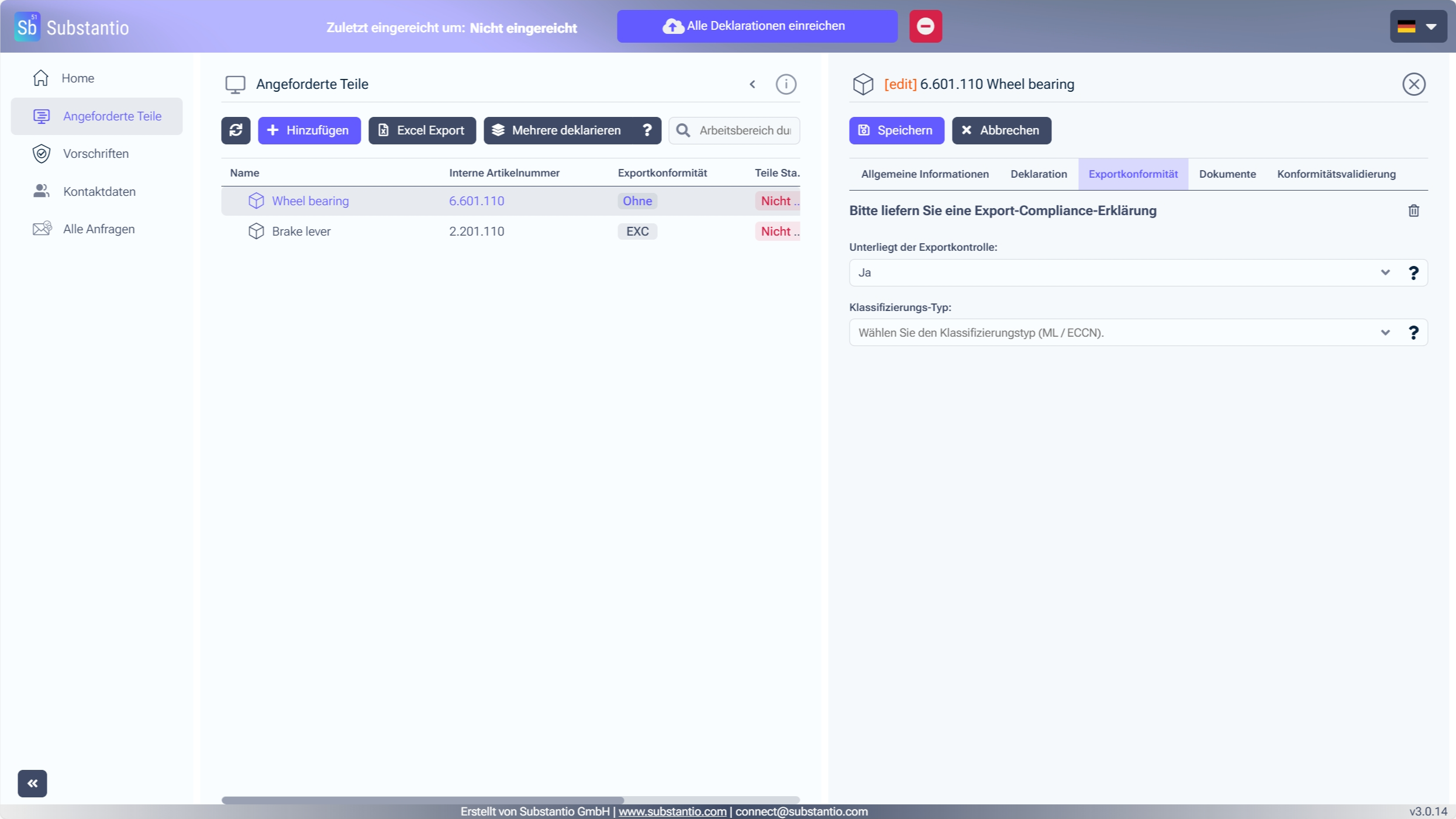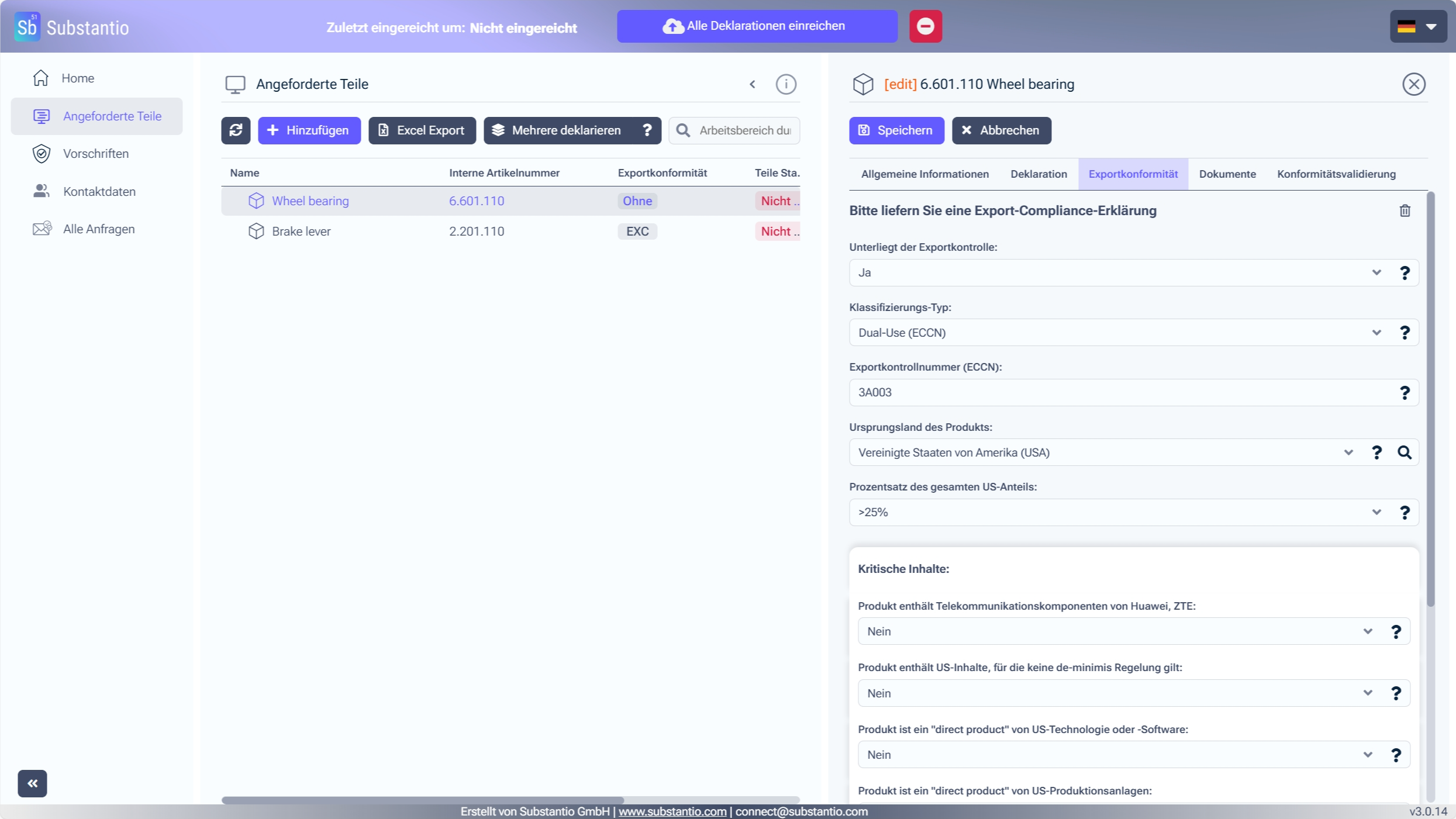 Bitte klicken Sie auf die Registerkarte Exportkonformität, um die Compliance-Informationen zu aktualisieren.